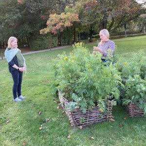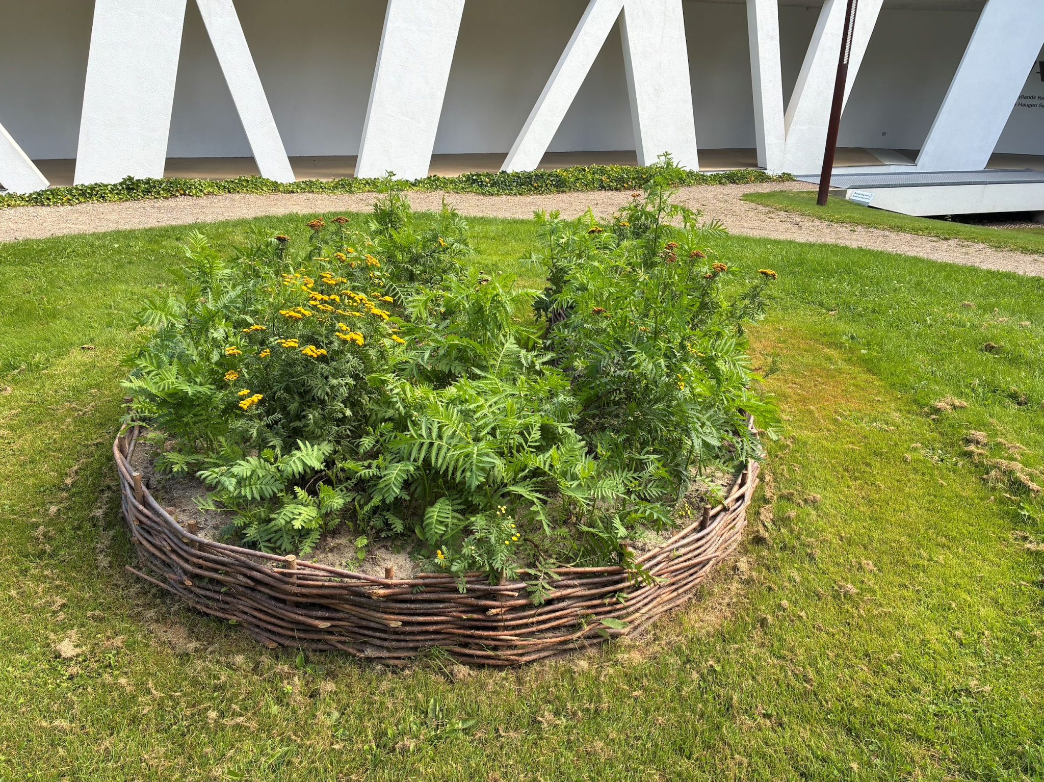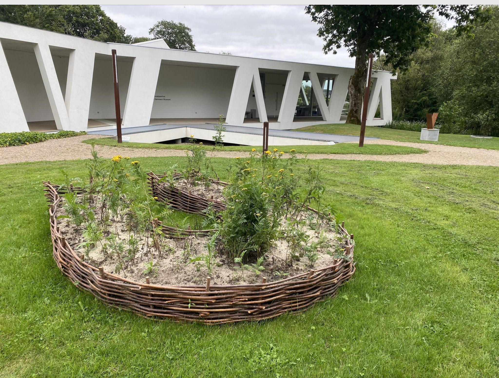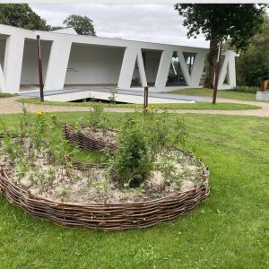 Cecilia Westerberg har således tidligere på året fået anlagt et bed, med hjælp fra frivillige kræfter i Vestjyllands Kunstpavillon. Udenfor Pavillonen finder I et hestesko formet bed omkranset af pileflet og med rejnfan.